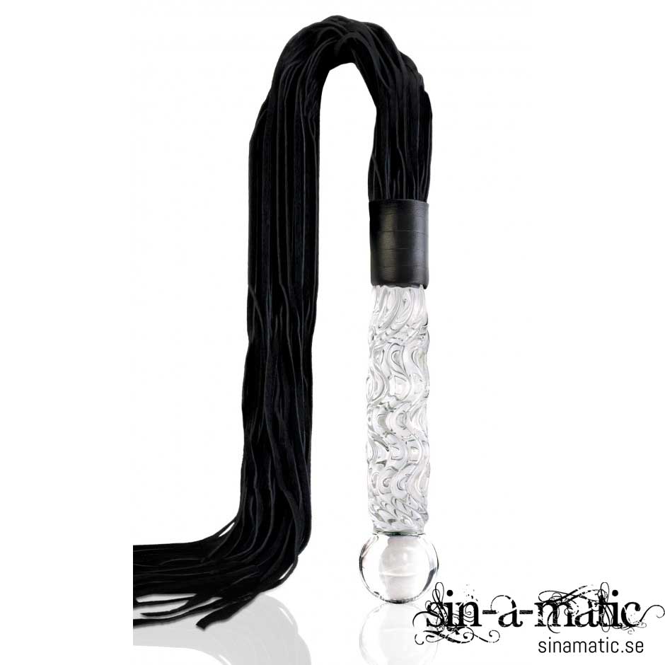 Denna lyxiga piska med glashandtag har äkta tjurskinn i flätorna och är mjuk nog för nybörjaren men tillräckligt tung för att leverera ett ordentligt snärt som även tillfredställer den mer erfarne.